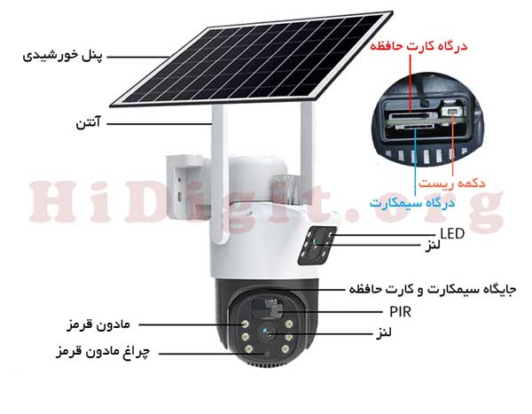 دوربین مداربسته چرخشی خورشیدی سولار سیمکارتی دو لنز | های دیجیت | HiDigit